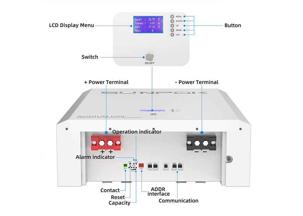 SUNPOK شما را دعوت می کند که وارد دوران جدیدی از ذخیره سازی انرژی شوید با باتری های لیتیوم یون ما که روی دیوار نصب شده اندSUNPOK ترکیبی از نوآوری و کارایی را ارائه می دهدبه ما بپیوندید تا مزایای بی نظیر باتری های لیتیوم یون را کشف کنیم و اینکه چگونه می توانند چشم انداز انرژی شما را تغییر دهند.